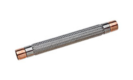 Packless VAF’s are constructed of deep pitch corrugated tubing for increased flexibility and vibration absorption, covered by high tensile wire braid for superior strength. Tubing and braid are reinforced by ferrules at each end, and connected to female copper tube ends by high temperature braze alloys. The units are designed for making sweat connections to refrigerant piping. Eleven models are available to fit copper tubing sizes from 1/4 inch through 1-5/8 inches O.D.